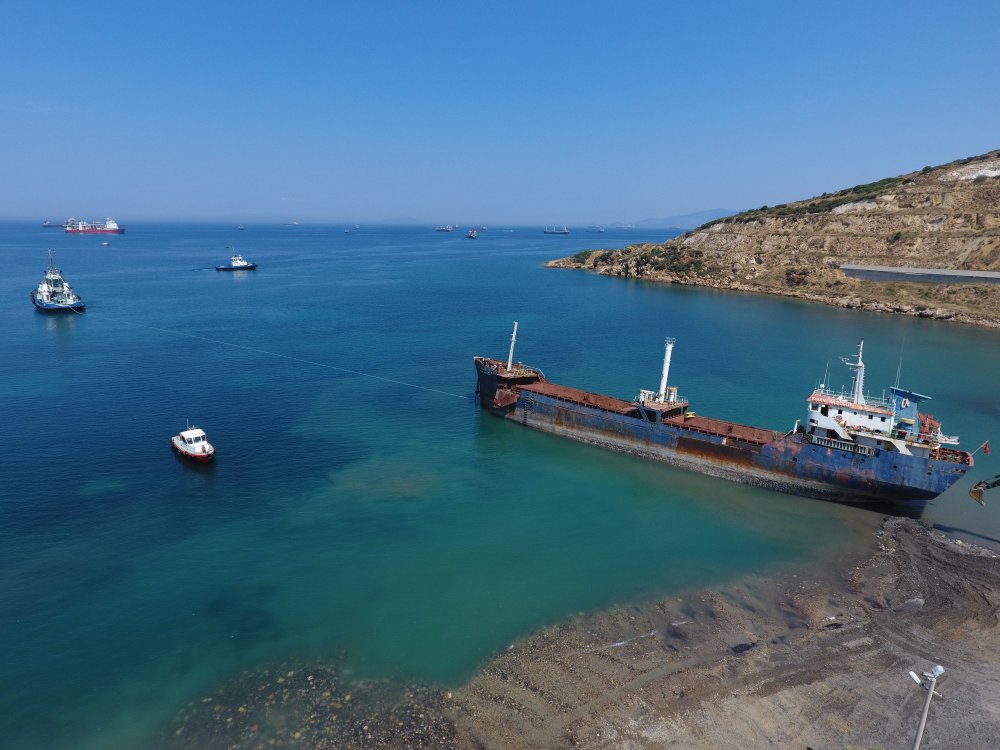 Birkaç ay öncesinde İzmir'in Aliağa ilçesinde kuvvetli fırtına nedeniyle kıyıya vuran Türk bayraklı M/V SİNAN NAİBOĞLU isimli yük gemisi, UZMAR Denizcilik Şirketi tarafından kurtarıldı.