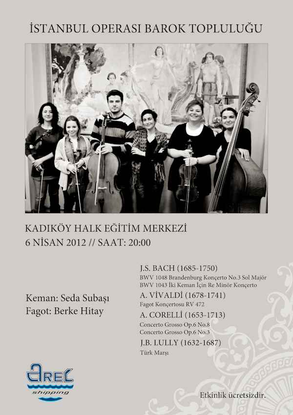 Arel Denizcilik'in katkılarıyla bu akşam Kadıköy Halk Eğitim Merkezinde İstanbul Operası Barok Topluluğu bir konser verecek...