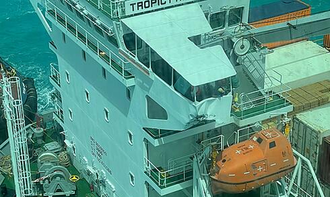 Her iki gemi de hasar alırken, TROPIC FREEDOM isimli konteyner gemisinin iskele kırlangıç kısmının parçalandığı anlaşıldı.