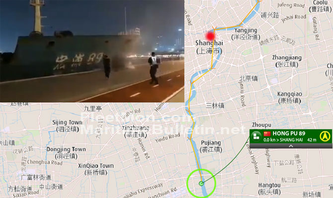 Seyir halindeyken kontrolünü kaybedip akıntıya kapılan Kargo gemisi HONG PU 89 Şangay'ın Xuhui Bölgesi'ndeki Huangpu nehrinin sol tarafındaki dolgu setlere tüm hızıyla vurdu.