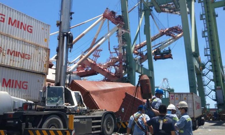 Panama bayraklı geminin temasının ardından çöken vinçler iskelede büyük hasara yol açarken bir işçi hafif yaralanarak hastaneye kaldırıldı.