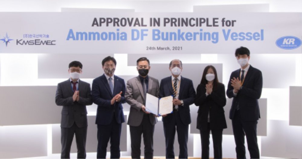 Singapurlu denizcilik şirketi Navig8 ile ortak çalışma yürüten Kore merkezli tasarım mühendisliği şirketi KMS EMEC, Kore Siciline danışarak amonyak bunker (yakıt ikmal) gemisi için tasarım konsepti geliştirdi. Navig8 ile çalışan KMS EMEC, MAN Energy Solution'ın motor özelliklerine uygun ilk yerel prensip tasarımı tanıttı. Ayrıca Navig8'in, bir deniz taşımacılığı şirketinin bakış açısından, amonyağın bir gemi yakıtı olarak kullanımındaki ticari fizibilitesi ve operasyonel ekonomisinin ayrıntılı bir incelemesini yaptığı vurgulandı.