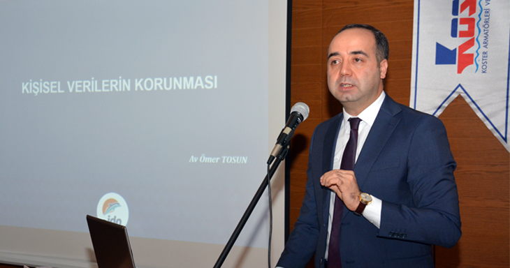 Daha sonra İstanbul Deniz Otobüsleri Hukuk Danışmanı Avukat Ömer Tosun, ‘6698 Sayılı Kişisel Verilerin Korunması Kanunu’ çerçevesinde dikkat edilmesi gereken hususları ve neler yapılması gerektiğini anlattı.