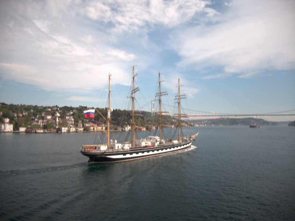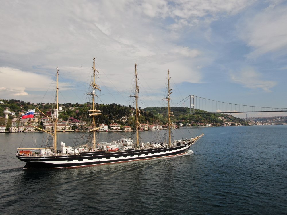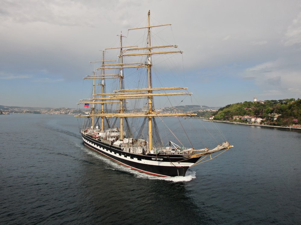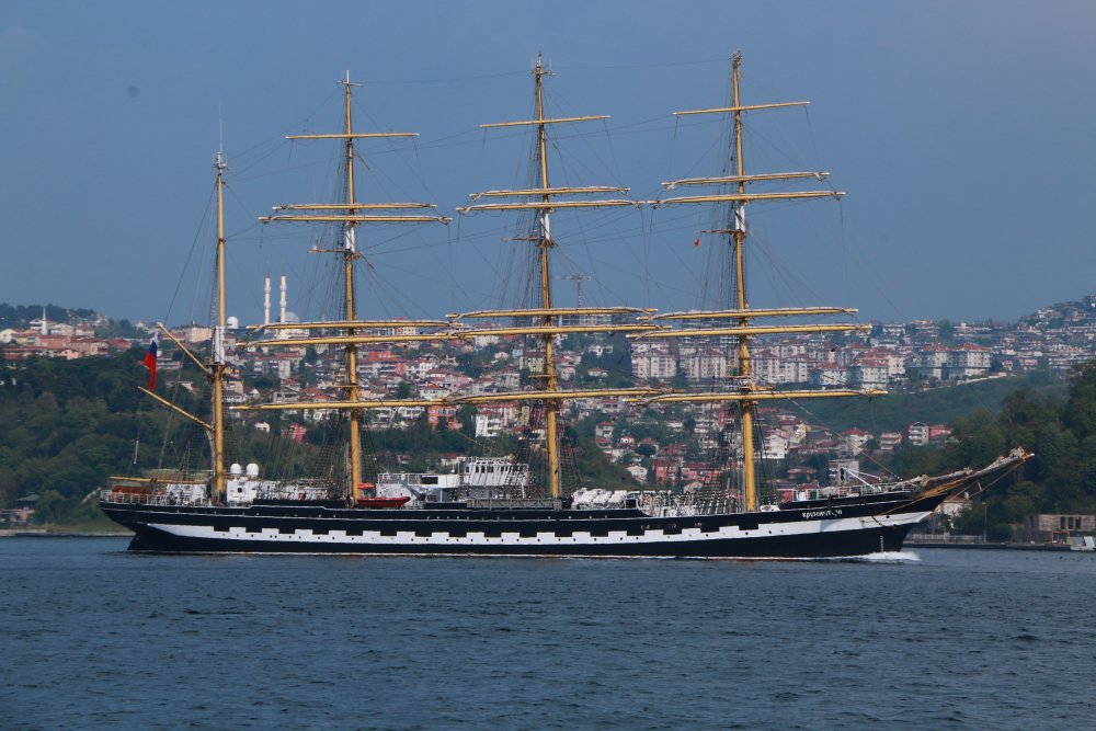 Almanya'da 1926 yılında yapımı tamamlanan 114 metre uzunluğunda ve 14 metre genişliğindeki Rusya bayraklı “Kruzenshtern” adlı yelkenli eğitim gemisi, saat 15.30 sıralarında Karadeniz’den İstanbul Boğazı'na giriş yaptı. Bellingshausen ve Lazarus adlı Rus denizcilerin Antartika'yi keşfinin 200'üncü yıl dönümü nedeniyle dünya turuna çıkan ve dünyanın en büyük ikinci yelkenli gemisi olarak bilinen tarihi gemi birçok liman ziyaretinde bulundu. 94 yaşındaki tarihi geminin bir sonraki durağı da Baltık Denizine kıyısı bulunan Rusya'nın Kaliningrad şehri olacak. Öte yandan yaklaşık 1,5 saatte boğaz geçişini tamamlayan gemi Marmara Denizine açıldı. Tarihi geminin boğazdan geçişi havadan da görüntülendi.