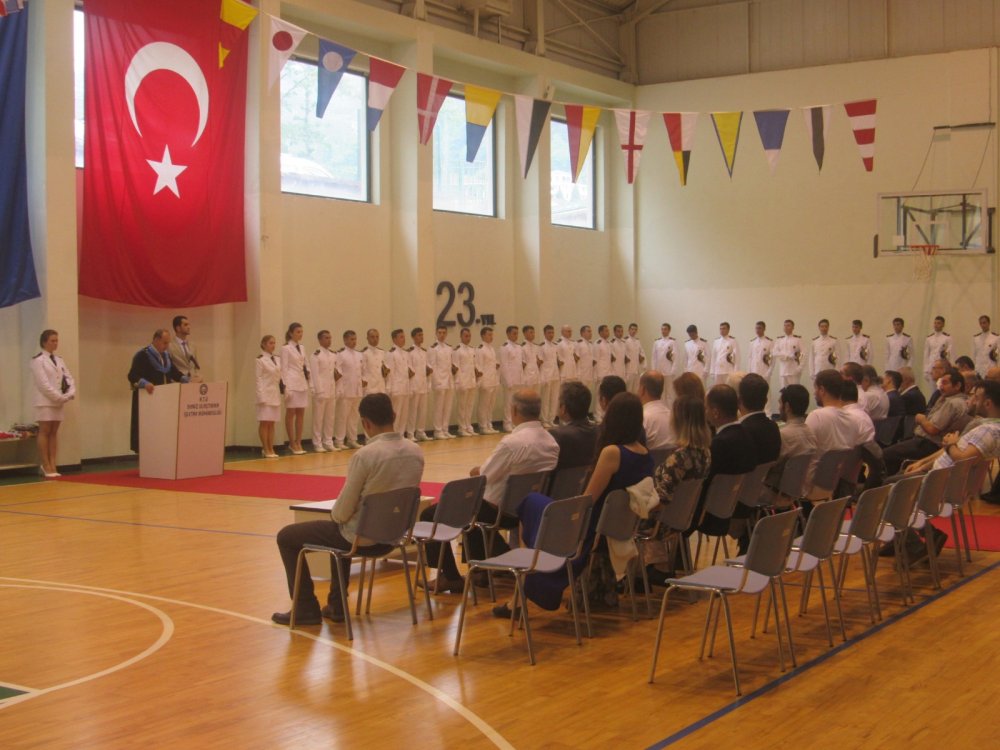 Saygı duruşu ve İstiklal Marşı ile başlayan tören, mezun öğrenciler adına bölüm birincisi Uzakyol Vardiya Zabiti HÜROL HOCEK'in konuşması ve protokol konuşmaları ile devam etti. Konuşmalar sonrası gerçekleştirilen geleneksel flama değişim töreni sırasında gönderdeki 20.dönem mezunlarına ait TANGO flamasının yerini 21.dönemde mezun olacak öğrencileri temsil eden UNIFORM flaması aldı.