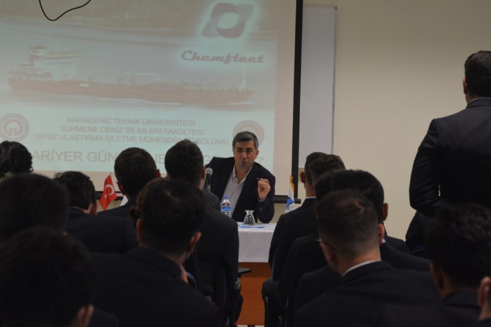 Günün ilk oturumunda Chemfleet Denizcilik adına şirketi temsilen Personel Müdürü Mahir Adalı öğrencilerimizle bir araya gelip, Oturum personel müdürünün şirketini tanıtmasıyla başladı ve filo hakkında bilgiler ile devam etti. Yılda yaklaşık 40 yeni zabite istihdam sağlandığını ve bu zabit ihtiyaçlarının tamamına yakınının şirket bünyesinde eğitimini tamamlamış stajyerlerden karşılandığını belirtti. Personele verilen önemden bahseden Mahir Adalı, personelinin şirketteki devamlılığının kendileri için ne kadar önemli olduğuna da değindi.