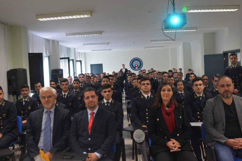 Sunum Kaptan Muammer Bıçakçı’nın kendini tanıtması ve denizcilik kariyerinden bahsetmesi ile başladı. Kapt. Bıçakçı, şirketin misyon ve vizyonunu anlatarak, bilgi ve beceri anlamında kendini geliştiren ve ‘Türk Modeli’ bir denizcilik anlayışına öncülük edecek gemi adamlarının yetişmesini sağlayacak olan bir crew management firması olduklarını söyledi. Türk gemi adamlarının istihdamını artırmak doğrultusunda çalışma içerisinde olduğunu belirtti. Firmada istihdam edilmesi planlanan stajyerlerde aranılan nitelikler üzerinde duruldu. Bu nitelikler arasında; deniz örf adetleri ve saygı kavramlarına özellikle vurgu yapan Kaptan BıçakçıI oturumun sonunda öğrencilerden aldığı soruları cevapladı.