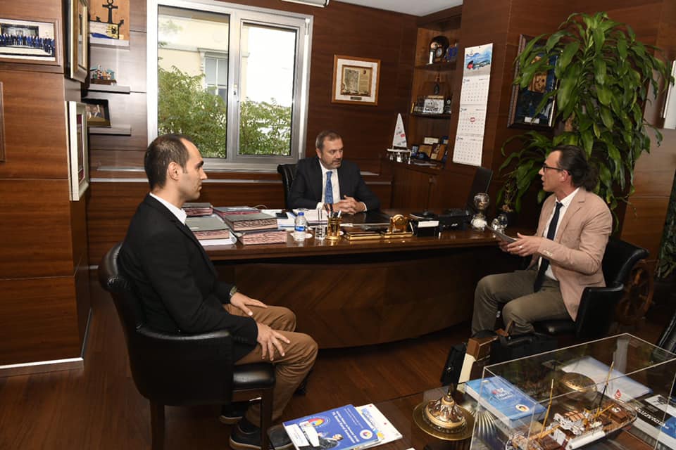 KTÜ Deniz Ulaştırma İşletme Mühendisliği Mezunlar Derneği, Yönetim Kurulu Başkanı Kaptan Şakir Tosun, Başkan Yardımcısı Kaptan Önder Körpe ve Yönetim Kurulu üyesi Ferhan Aslan Romano olarak İMEAK Deniz Ticaret Odası Başkanı Tamer Kıran ve Meclis Başkanı Salih Zeki Çakır’ı ziyaret etti.