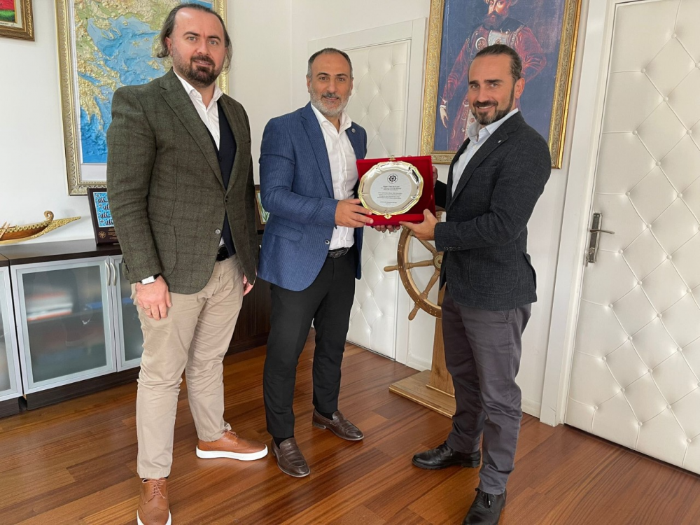 KTUDUIM Mezunlar Derneği Yönetim Kurulu Başkanı Kılavuz Kapt.Ahmet İhsan AVCI ve Başkan Yardımcısı Kapt.Orhan Kasap, Denizcilik Genel Müdürü Ünal Baylan ve Genel Müdür Yardımcısı Yılmaz Taşçı’ ya ziyarette bulunarak görev süreçlerindeki çalışmalarından, sektöre desteklerinden dolayı teşekkürlerini ileterek günün anlamına binaen plaket takdim ettiler.