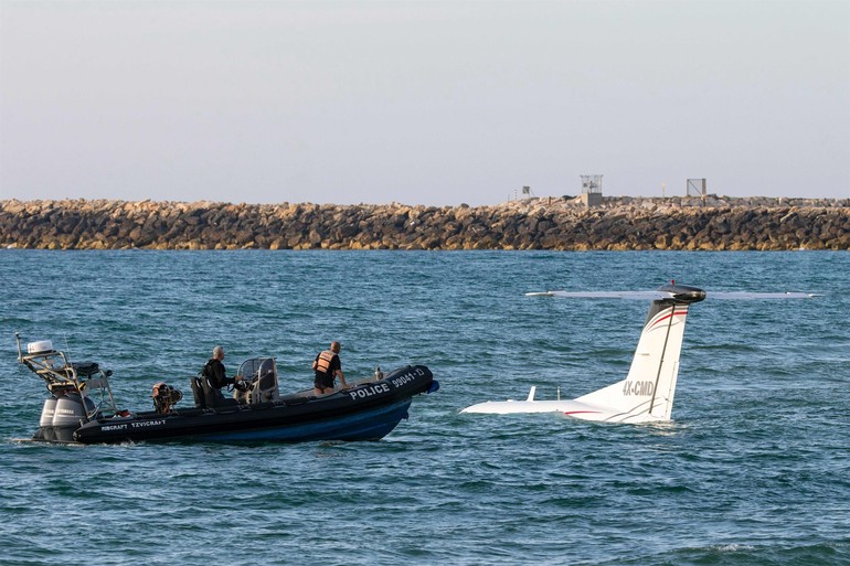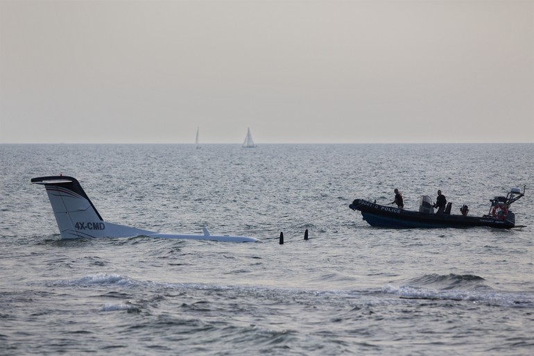 İsrail’in Tel Aviv kenti üzerinde uçan çift kişilik bir küçük uçak henüz bilinmeyen bir nedenle Metzizin Plajı açıklarında denize zorunlu iniş yaptı ve kısa sürede sulara gömüldü.