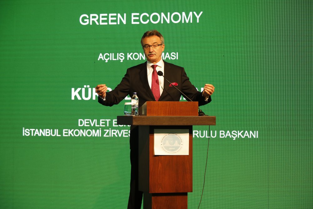 İstanbul Ekonomi Zirvesi Yönetim Kurulu Başkanı Devlet Eski Bakanı Kürşad Tüzmen gelişmekte olan ülkelerin kolay kolay Yeşil Ekonomi bilincine geçemediğini aktararak “Müsteşarlık dönemimde dolar bizim paramız ama sizin sorununuz denmişti. Bugün geldiğimiz noktada bunun gerçek olduğunu görüyoruz. Ama inanıyorum ki hükümetimiz elinden geleni yaparak, bu sorunları aşacak. 2015’te imza atılan Paris Anlaşması’nda,1.5 derece emisyon sıcaklık artışı sınırlandırılması getirildi. Ancak Glasgow’da yapılan toplantıda bu hedefe ulaşmak için yüzde 80 uzakta olduğumuz fark edildi. Gelişmiş ülkeler de bu taahhütleri yerine getiremedi. Ülkeler özveri ile bu konuya ağırlık verirse bu konunun üstesinden gelebiliriz. Türkiye olarak iki şahlanan atımız var bunlar; ihracat ve turizm. Bizler ekonomide, ihracat ve turizm kaynaklarımızı kullanarak Yeşil Ekonomi’ye kaynak sağlayabiliriz” açıklamasında bulundu.