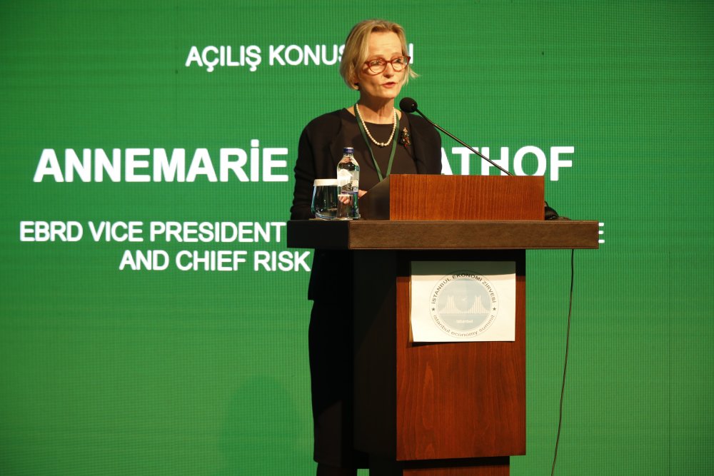 Avrupa İmar ve Kalkınma Bankası (EBRD) Risk ve Uyum Başkan Yardımcısı ve Riskten Sorumlu Başkan Annemarie Straathof da, sermaye zeminini son 5 senenin başarısından güç alıp yeşil finansı artırarak yüzde 40'a getirdiklerini ifade etti. Annemarie Straathof 2022 yılında tavsiye listelerini açıklayacaklarını söyleyerek; Türkiye’nin karbonsuzlaştırma konusunda önemli adımlar attığını belirtti. Straarthof, şunları söyledi: “Enerji verimliliği konusunda dikkat çekmek istiyoruz. Kümülatif sera gazının emisyonlarında azalma hedefliyoruz. Çalışmalarımız Paris Sözleşmesi ve iklim değişikliğiyle ilgili alanlara paralel gitmektedir. İklim krizi yüzyılımızın en büyük felaketi ve aciliyeti kesindir.”