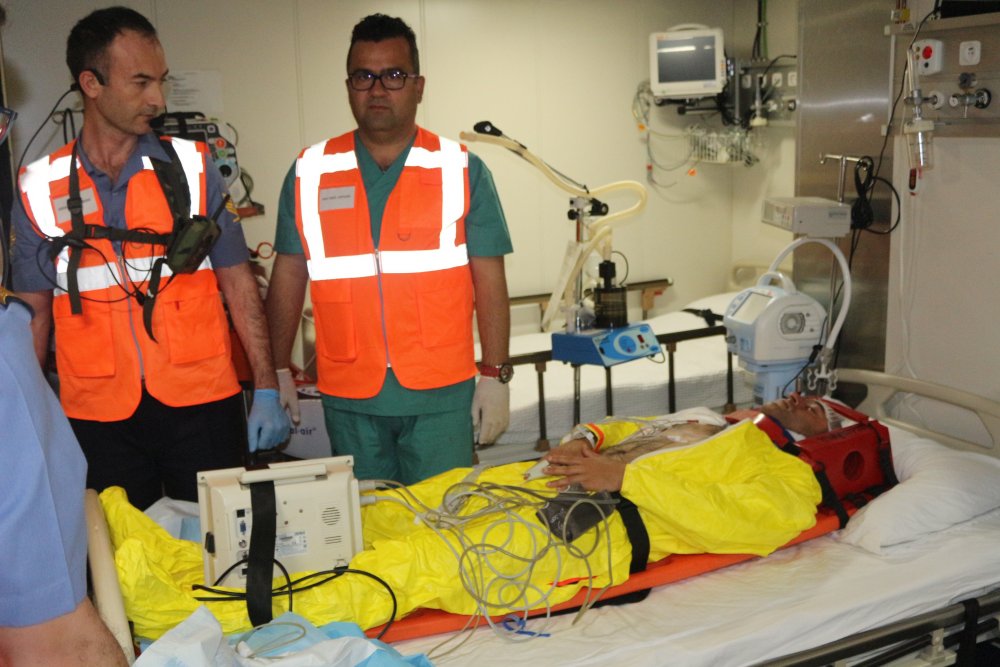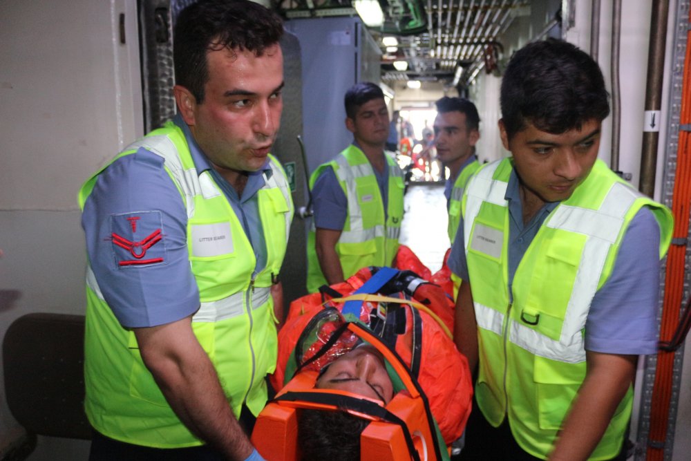 TCG Alemdar’da bulunan DTKYT tarafından oluşturulan tıbbi alanlarda kazazedelere tıbbi müdahale, tetkik ve basın odası tedavileri uygulandı. Biz kazazede, genel durumu kontrol altına alındıktan sonra tıbbi personel eşliğinde helikopterle bölgedeki en yakın tam teşekküllü devlet hastanesine sevk edildi. Başarıyla tamamlanan tıbbi tatbikatta DTKYT ve Pak timleri başarılarıyla göz doldurdu.