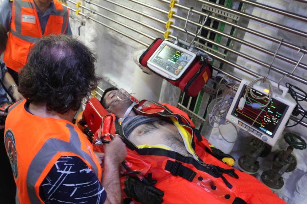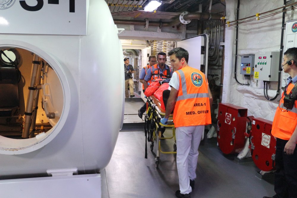 DTKYT hakkında bilgi veren Kıdemli Tabip Subayı, denizaltından personel kurtarmanın karmaşık süreçleri nedeniyle uygun tıbbi desteğin çok önemli olduğunu belirterek, amaçlarının farklı senaryolarla yerinde ve vakitlice ihtiyaca cevap vermek olduğunu dile getirdi.
