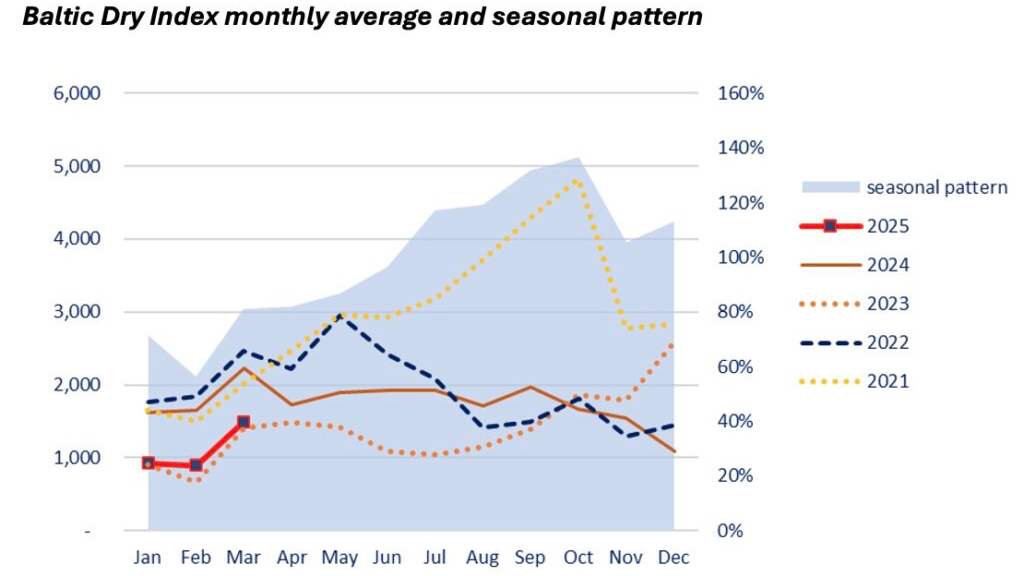 2025 yılı şu ana kadar 2023’ün izinden gidiyor – bu da kötü bir şey değil. Ancak Nisan-Mayıs dönemindeki klasik mevsimsel zirve gelecek mi, bu hâlâ belirsiz. Görünüşe göre, navlun piyasasını en çok şekillendiren yine öngörülemez politikalar olacak.