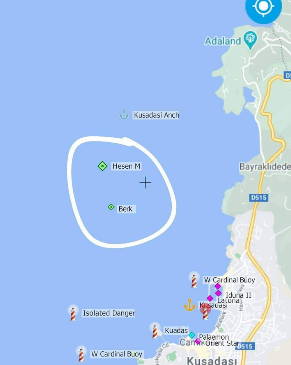 Kuşadası açıklarına demirleyen iki geminin yetkilileri birbirinden şikayetçi olurken, Kuşadası Deniz Polisi, Sahil Güvenlik Komutanlığı ve Liman Başkanlığı gerekli işlemler için harekete geçti.