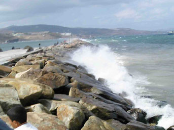 Kuzey Ege'de etkili olan poyraz, deniz ulaşımını olumsuz etkiliyor.