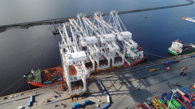 Çin'den deniz yoluyla gelen dört vinç, devasa yüklerin taşınması için özelleştirilmiş bir gemi olan Zhen Hua 27 üzerinde ulaştı. Her bir portal 2.100 ton ağırlığında ve 54 metre kaldırma kapasitesine sahip. Aynı anda iki adet 40 fitlik konteyneri kaldırabilir.