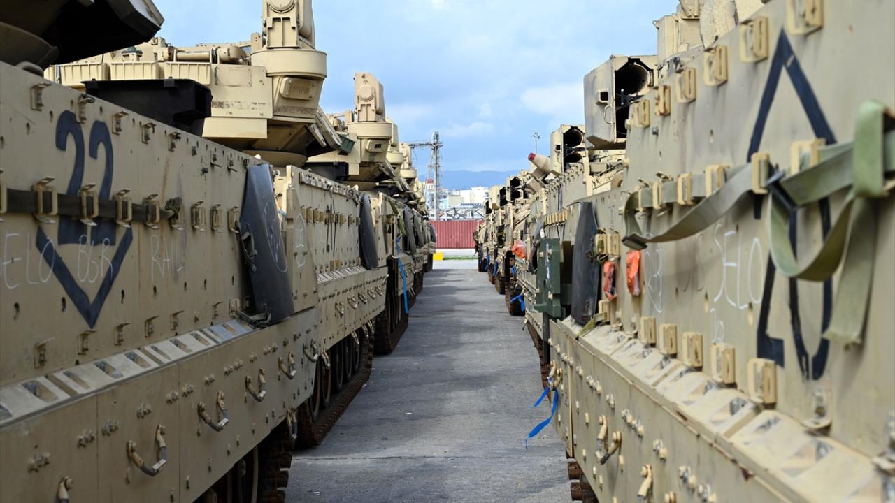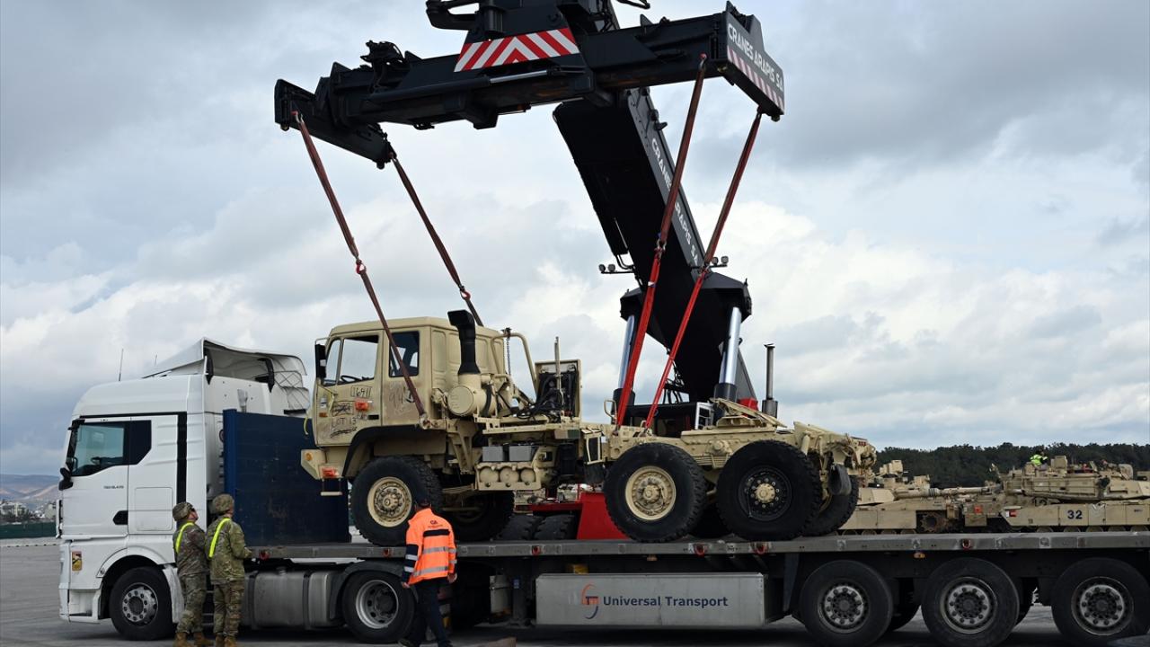 ABD Donanmasına ait nakliye gemisi "Leroy A. Mendonca" ve askeri araçlar, Yunanistan'ın Dedeağaç Limanı'na konuşlandırıldı.