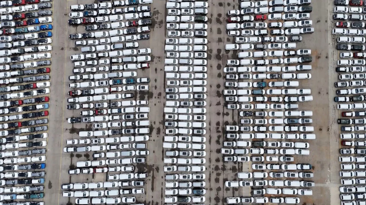 Dron ile kaydedilen görüntülerde, limanın büyük bölümünü kaplayan yüzlerce aracın oluşturduğu sıra sıra dizili manzara dikkat çekti.