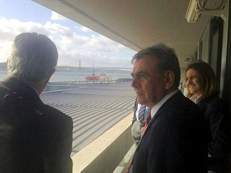 Portekiz’de temaslarda bulunan Başkan Aziz Kocaoğlu, Lizbon körfezinde deniz işletmeciliği yapan Transtejo-Soflusa firması yetkililerinden brifing alıp terminalleri inceledi.