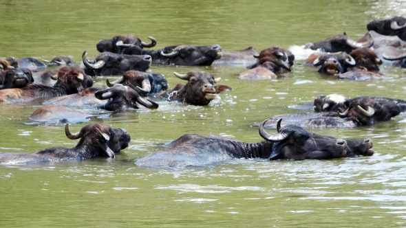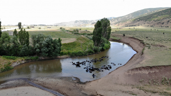Afrika'yı andıran sahneler, zaman zaman renkli görüntüler oluşturuyor. Mandaların su içerisinde serinlemeye çalıştığı anlar, havadan görüntülendi.