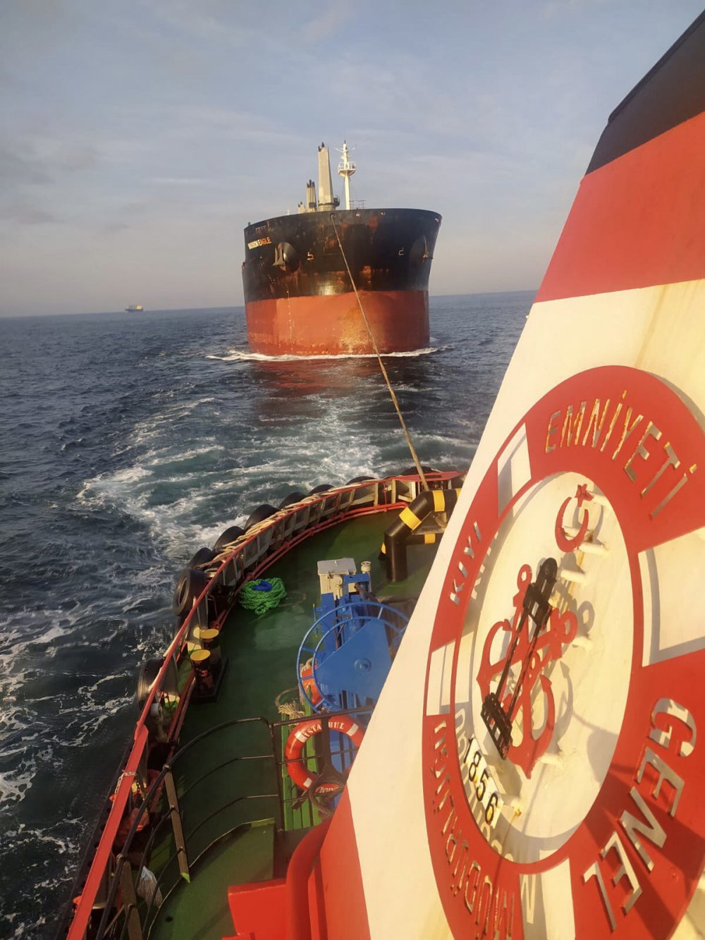 İskenderun’dan Tuzla’ya seyir halindeyken Marmara Adası trafik hattı içinde makine arızası yaşayan 199 metre boyundaki MADISON EAGLE isimli geminin KEGM'e ait KURTARMA-3 römorkörü eşliğinde Tuzla demir bölgesine emniyetle demirletildiği açıklandı.