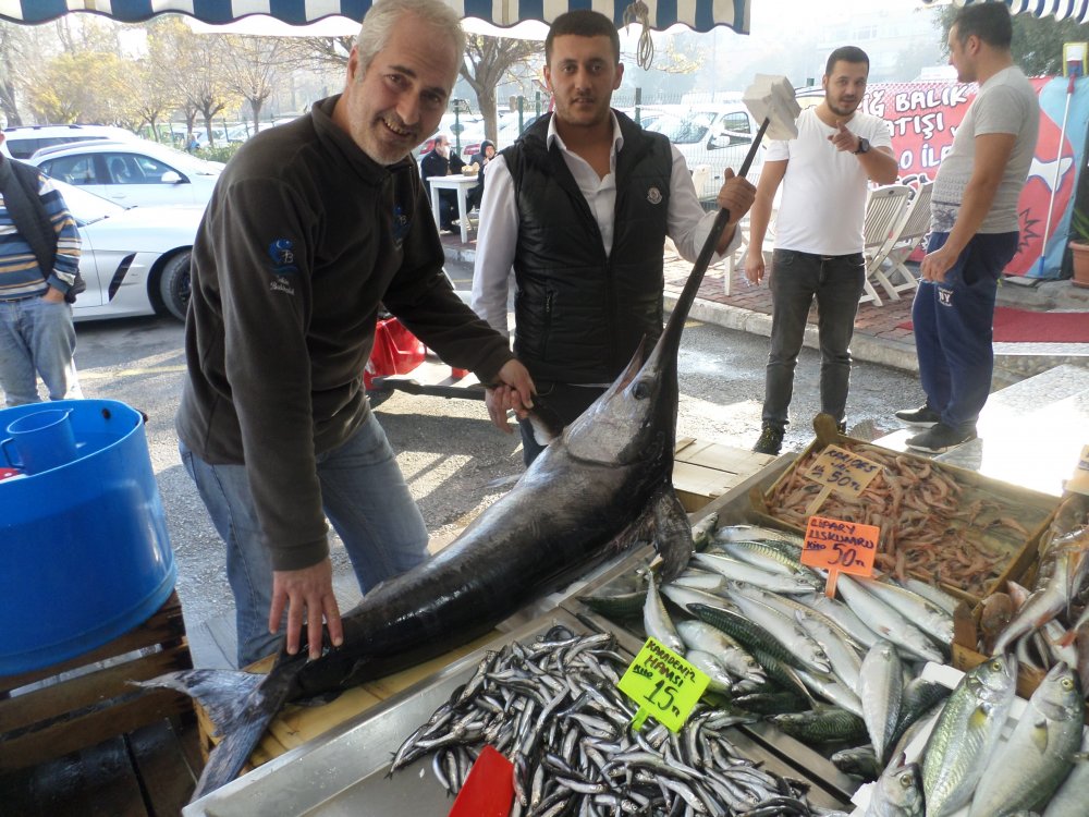 Marmara denizinde yakalanan kılıç balığı altın fiyatına satıldı