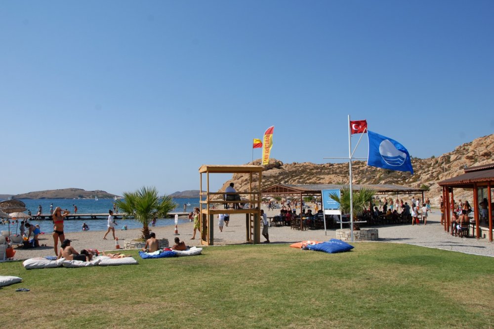 Mavi Bayrak, gerekli standartları taşıyan nitelikli plaj ve marinalara verilen uluslararası bir çevre ödülü. Plajlar için 33, marinalar için 24 mavi bayrak kriteri bulunuyor. Bu kriterler plajda yüzme suyu kalitesi, çevre eğitimi ve bilgilendirme, çevre yönetimi, can güvenliği ve hizmetler başlıkları altında toplanıyor. 15 gün arayla iki parametrede ve sezon süresince deniz suyu numunesi alınıp mikrobiyolojik düzeyde analizlerin yapılması, tesisin paket arıtma tesisi veya belediyenin arıtma tesisi kurmuş olması önemli kriterlerin başında yer alıyor. Mavi bayrak adayı plajlar için İl Sağlık Müdürlüğü tarafından belirlenen numune noktalarından Mayıs ayı başı ile Eylül ayı sonuna kadar sezon boyunca deniz suyu numunesi alınıyor.