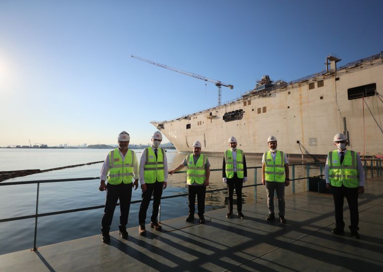 Sanayi ve Teknoloji Bakanı Mustafa Varank, Türk Silahlı Kuvvetlerinin deniz aşırı askeri harekat ve insani yardım operasyonu kabiliyetlerini arttıracak, Çok Maksatlı Amfibi Hücum Gemisi ANADOLU’nun yapımının sürdüğü Tuzla Sedef Tersanesi’nde incelemelerde bulundu.