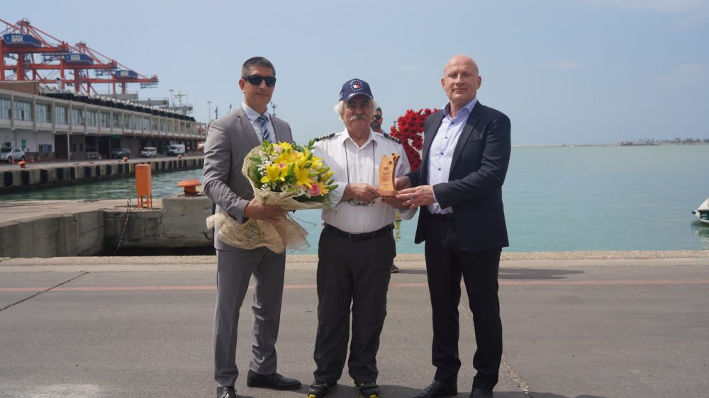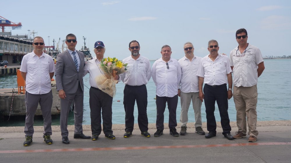 Konuşmaların ardından meslekte 40. yılını tamamlayan Baş Kılavuz Kaptan Sezai Şahin Genel Müdür Johan Van Daele ve Deniz Hizmetleri Müdürü Savaş Çakmak'a plaketlerini takdim etti.