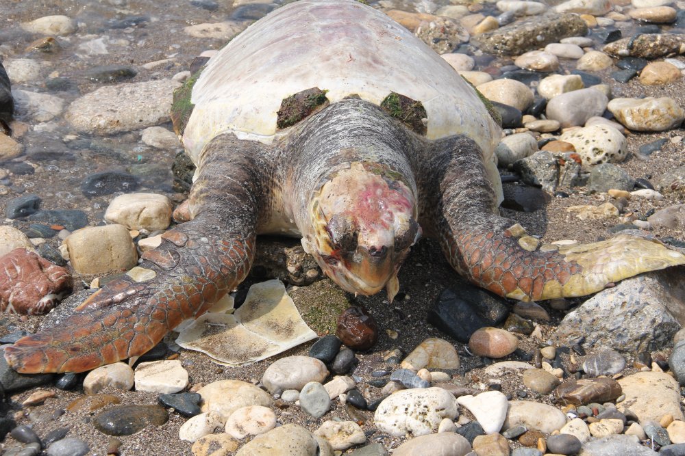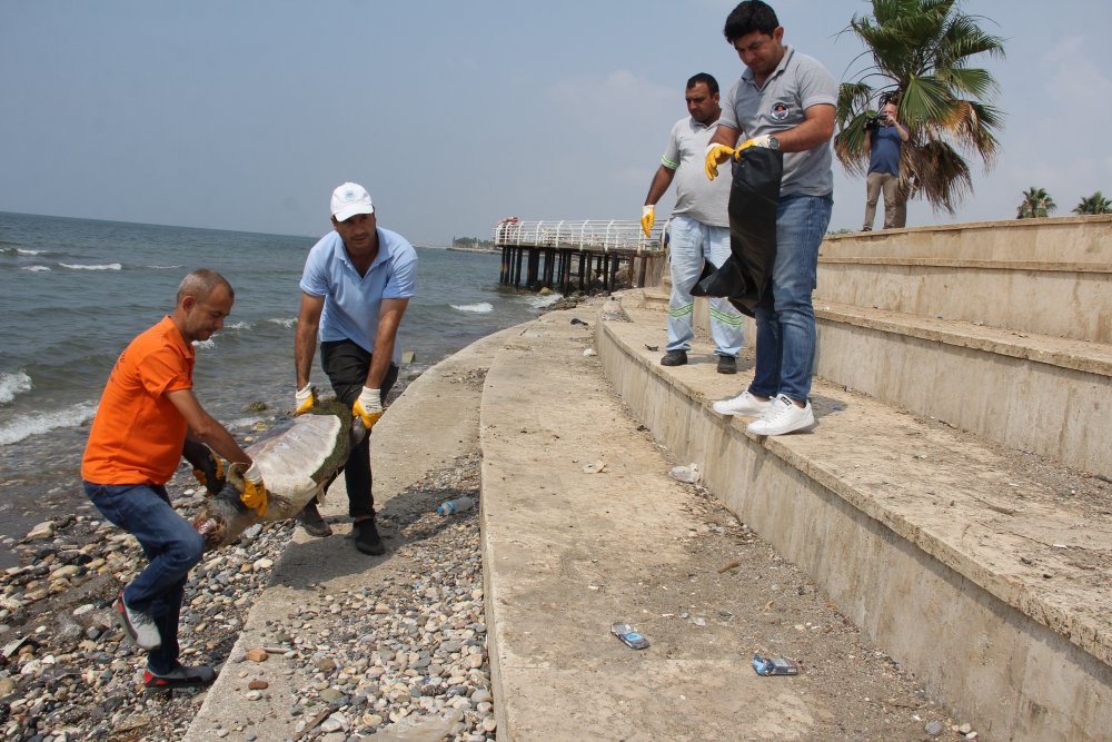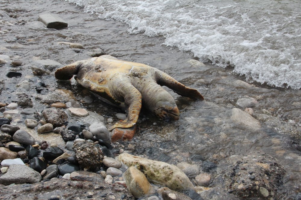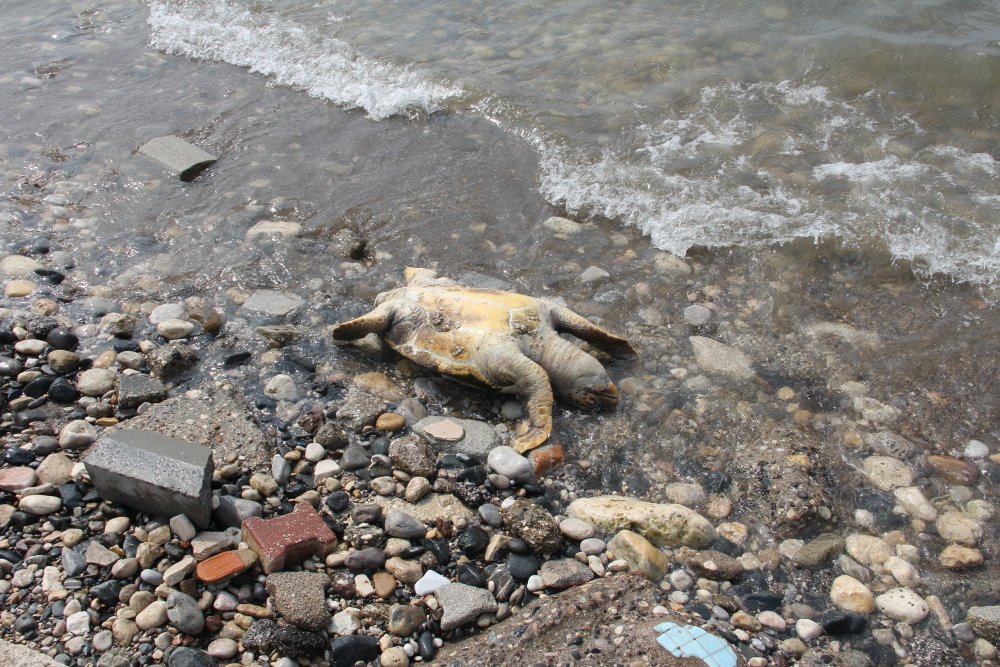 Mersin’in merkez Akdeniz ilçesi Çamlıbel Balıkçı Barınağı ön tarafındaki eski lunaparkın bulunduğu sahilde, bir caretta caretta ölmüş halde bulundu. Denizde sürüklenerek sahile kadar ulaşan kaplumbağa ölüsü, Mersin Büyükşehir Belediye Başkanı Vahap Seçer’in denetim yaptığı sırada görüldü. Belediye yetkilileri, baş kısmından darbe aldığı görülen kaplumbağanın birkaç gün önce öldüğünü belirtirken, sahile çağrılan ekipler ölü kaplumbağayı denizden çıkararak, poşetleyip belediye aracına koydular.