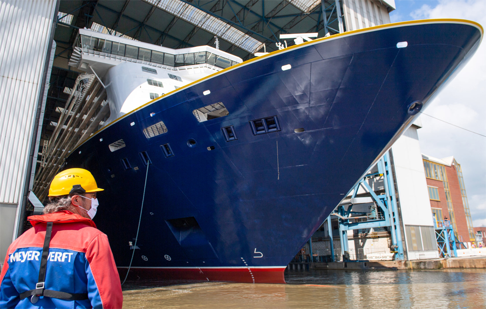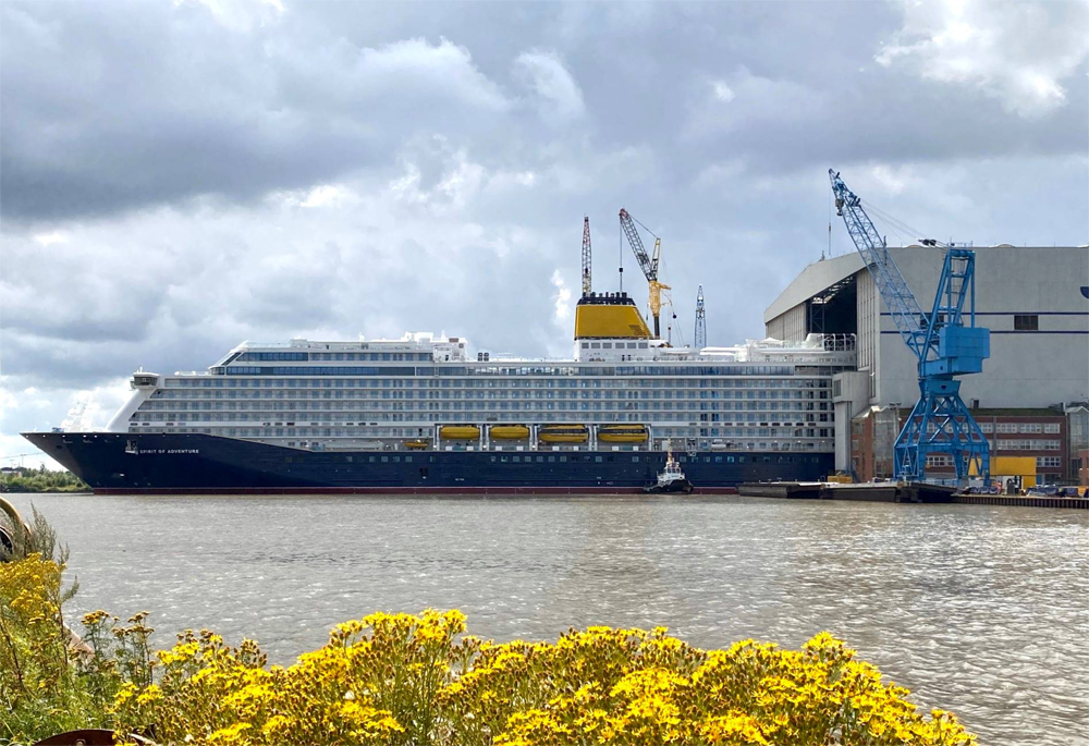 Almanya Papenburg kentindeki Meyer Werft tersanesi, dünyanın en yeni kruvaziyer gemisini suya indirdi! 58.250 gros ton kapasiteli Spirit of Adventure, İngiltere'nin Saga Cruises şirketi için inşa edildi.