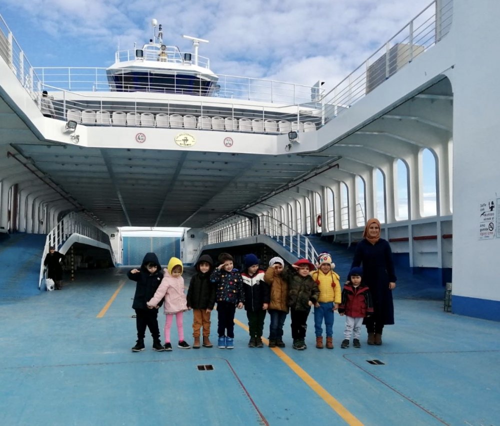 Gökçeada Burhanettin Kurt Anaokulu’nda 4 yaş grubunda eğitim gören 9 çocuk Gökçeada’daki Gestaş filosuna ait Gelibolu gemisini ziyaret etti.