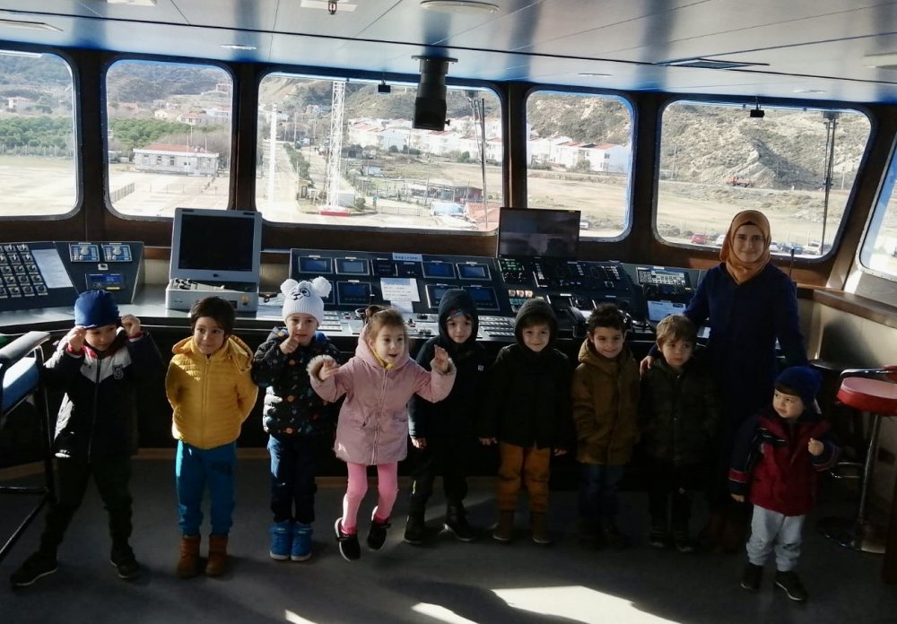 Kaptanın ‘’Yeni gemilerde dümen joystick gibi’’ olduğunu söyleyip, joystick dümeni göstermesi üzerine minikler, şaşkınlıklarını gizleyemedi. Kaptan Köşkü’nde uzun süre geçiren çocuklar, kaptana hayranlıklarını gizlemeyerek ileride onun gibi olmak istediklerini dile getirdi. Gezi sonunda kaptan ve mürettebat ile vedalaşan çocuklar, hayallerine giden ilk adımı atmış oldu.