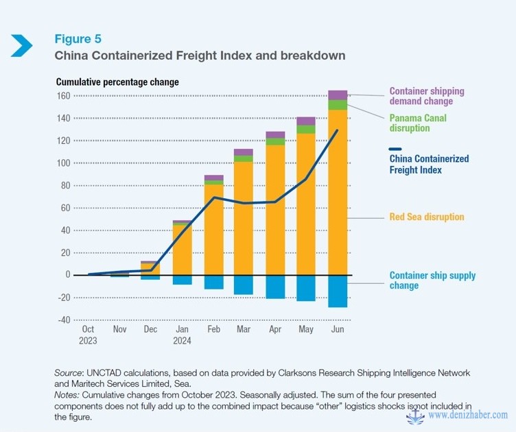 Birleşmiş Milletler'in ticaret ve kalkınma kuruluşu UNCTAD, yakın zamanda yayınladığı yıllık nakliye raporunda, Husilerin bu yıl konteyner hatlarının karlılığını yüksek tutmaya nasıl yardımcı olduğunu açıkça ortaya koyan 2024 Deniz Taşımacılığı İncelemesi'ni yayınladı.