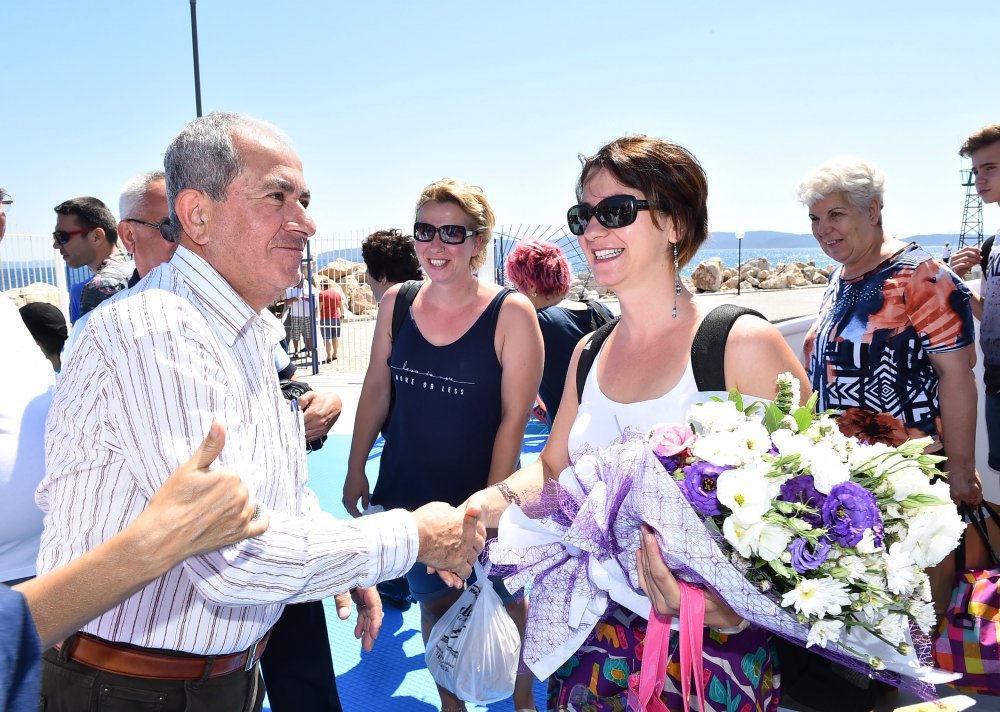 Foça'da kısa bir molanın ardından Mordoğan'a hareket eden geminin yolcuları ise oldukça keyifliydi. Seyahatleri boyunca kimi gazete okudu, kimi cep telefonundan televizyon seyretti kimi de derin maviliklere bakarak güzel manzaranın tadını çıkarttı. 107 yolcuyla Mordoğan'a ulaşan gemiyi Mordoğan İskelesi'nde Karaburun Belediye Başkanı Ahmet Çakır çiçeklerle karşıladı. Esnafın ve vatandaşların da katılımıyla Mordoğan seferinin ilk yolcuları büyük bir heyecanla karşılandı.