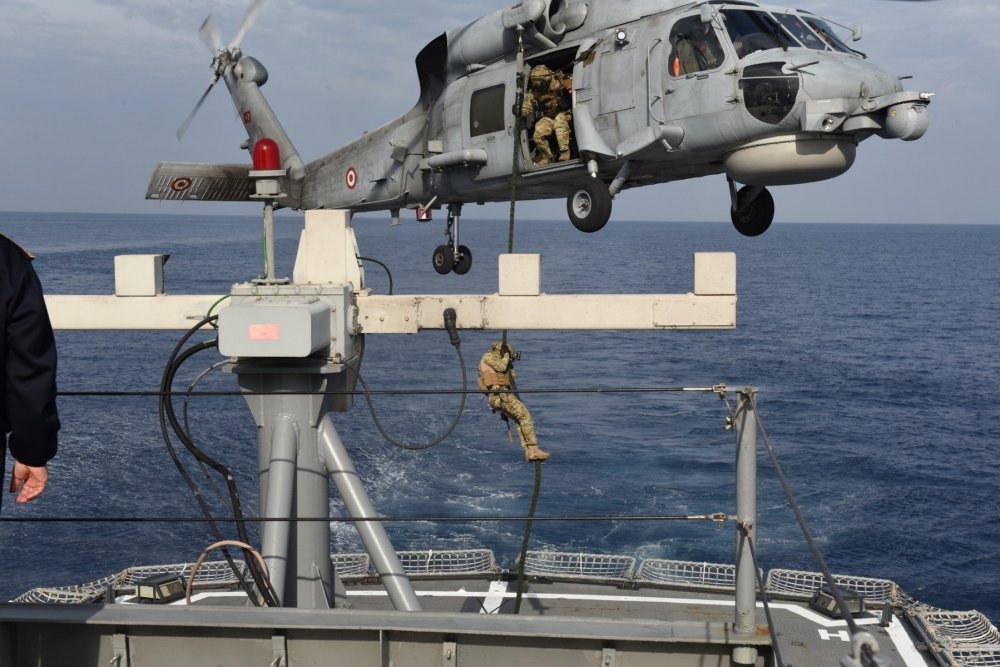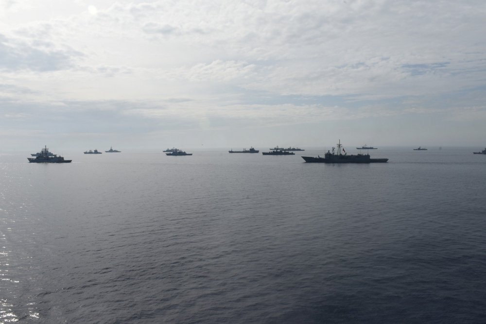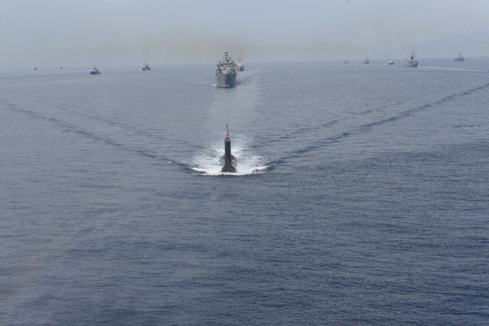 “Doğu Akdeniz-2019 Davet Tatbikatı 2’nci gününde ileri manevra talimleri, helikopterden gemiye dikey iniş, asimetrik tehdit altında liman çıkışı, taranmış kanalda seyir, hava savunma harbi, denizaltı savunma harbi ve fotoğraf çekimi gibi faaliyetleriyle hız kesmeden devam ediyor.”