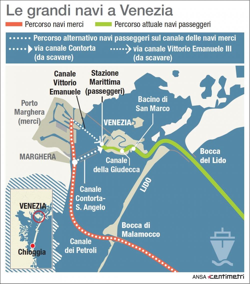 Venedik'teki büyük gemiler, izledikleri güzergahlar