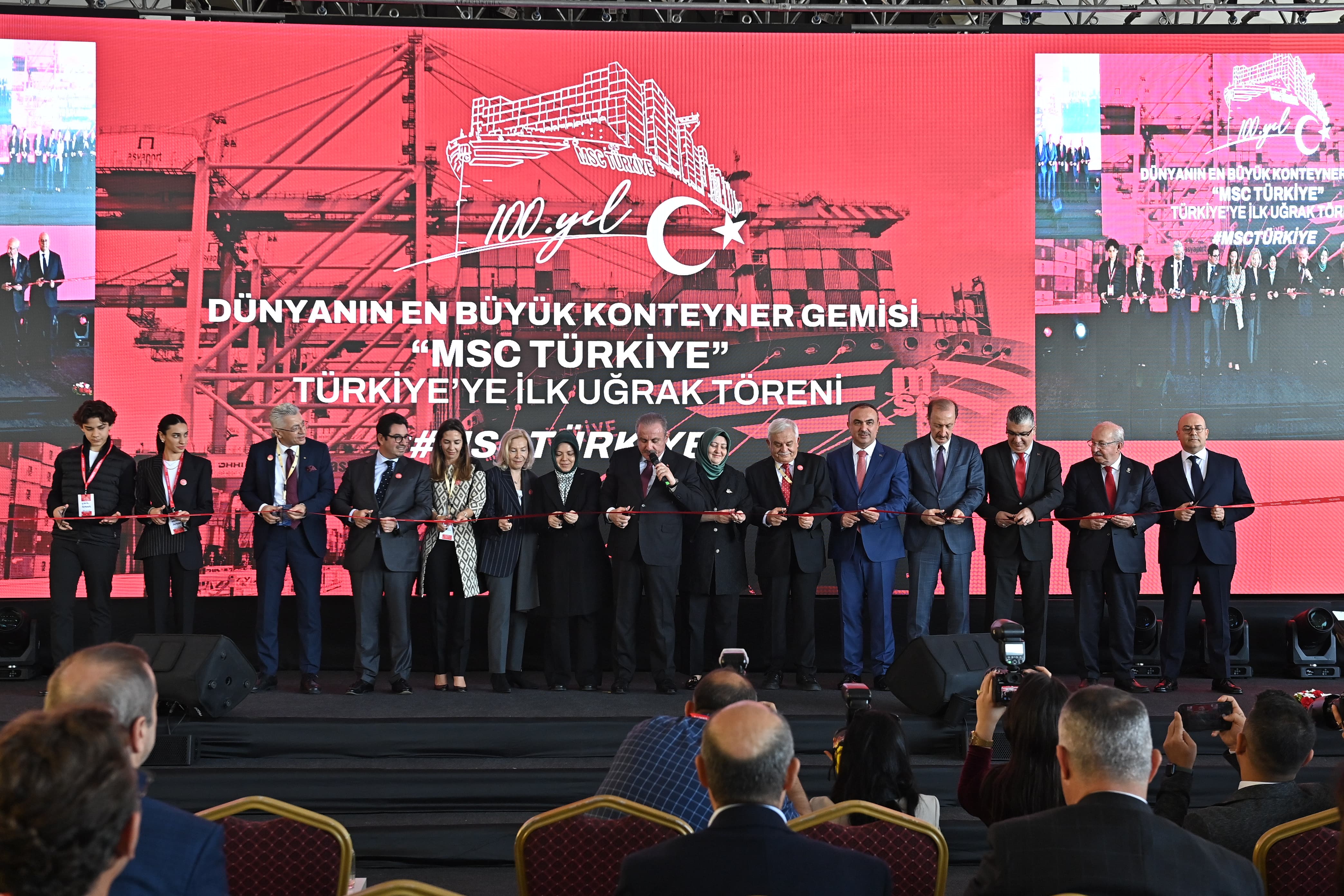 Dünyanın en büyük konteyner gemilerinden biri olan ve Cumhuriyet'in kuruluşunun 100'üncü yılı nedeniyle 'MSC Türkiye' adı verilen gemi, Tekirdağ Asyaport Limanı'nda törenle karşılandı.