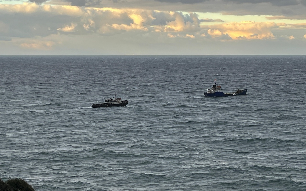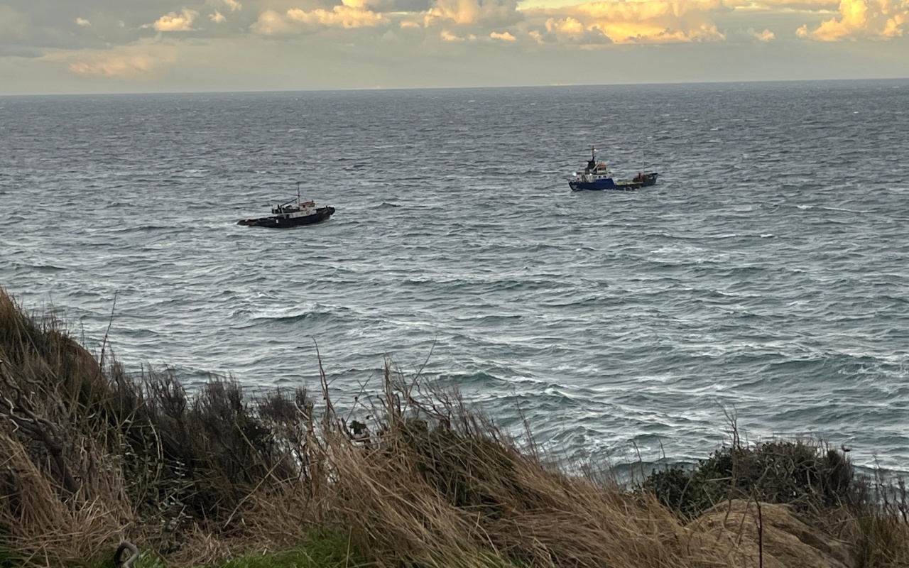 Hayalet gemiyi 50 metre mesafeden römorkör takip ediyor.