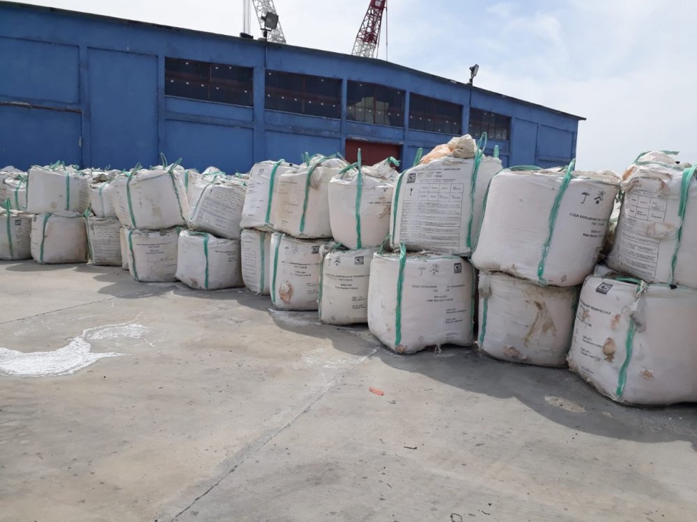 Fotoğraf, gemiden Haydarpaşa limanına çıkarılan soda ash yüküne ait, yük 2 kat naylon ambalaj ve son kat büyük cuval içerisindedir .