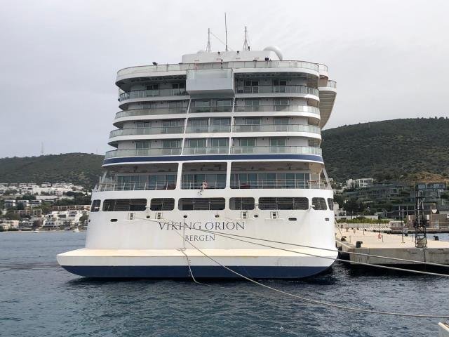 Hırvatistan'ın Rijeka Limanı'ndan gelen 227 metre uzunluğunda 34 metre genişliğindeki 980 yolcu kapasiteli Viking Orion isimli kruvaziyer gemisi sabah saatlerinde Bodrum Cruise Port'un iskelesine demir attı