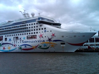 ABD Deniz Kuvvetlerinden hizmet dışı kalan ve müze olarak kullanılacak olan USS Intrepid uçak gemisinin yanaşacağı rıhtıma Norwegian Star adlı yolcu gemisi bindirdi.