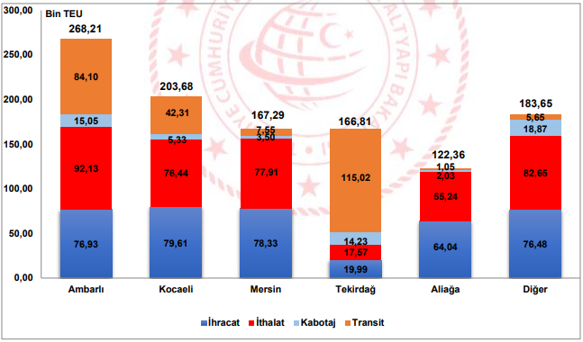 En fazla konteyner elleçleme Ambarlı Liman Başkanlığı idari sınırlarında gerçekleşti