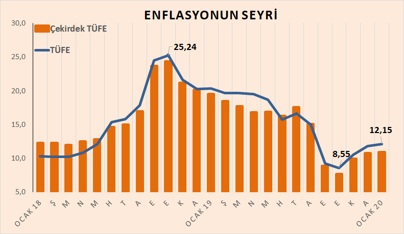 2020 yılının ilk enflasyon verisi beklentilerin üzerinde gerçekleşti.