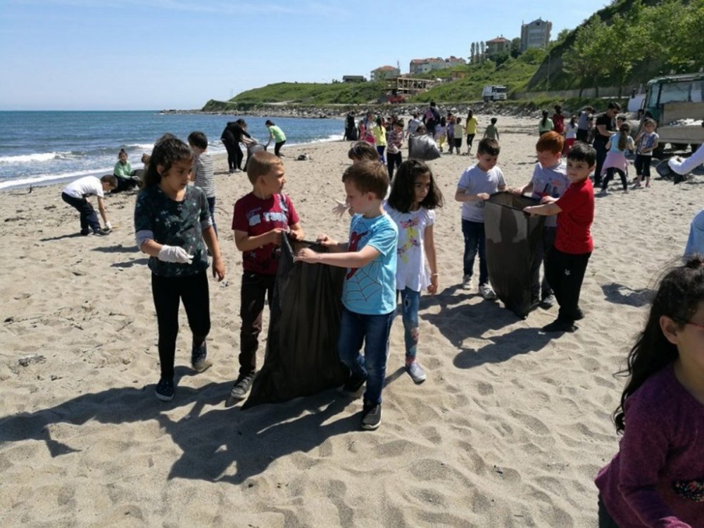 Sinop'un Türkeli ilçesine bağlı Güzelkent köyündeki Helaldı İlkokulu öğrencileri, çevre temizliğinin önemine dikkat çekmek amacıyla Güzelkent Plajı'na atılan çöpleri temizledi.
