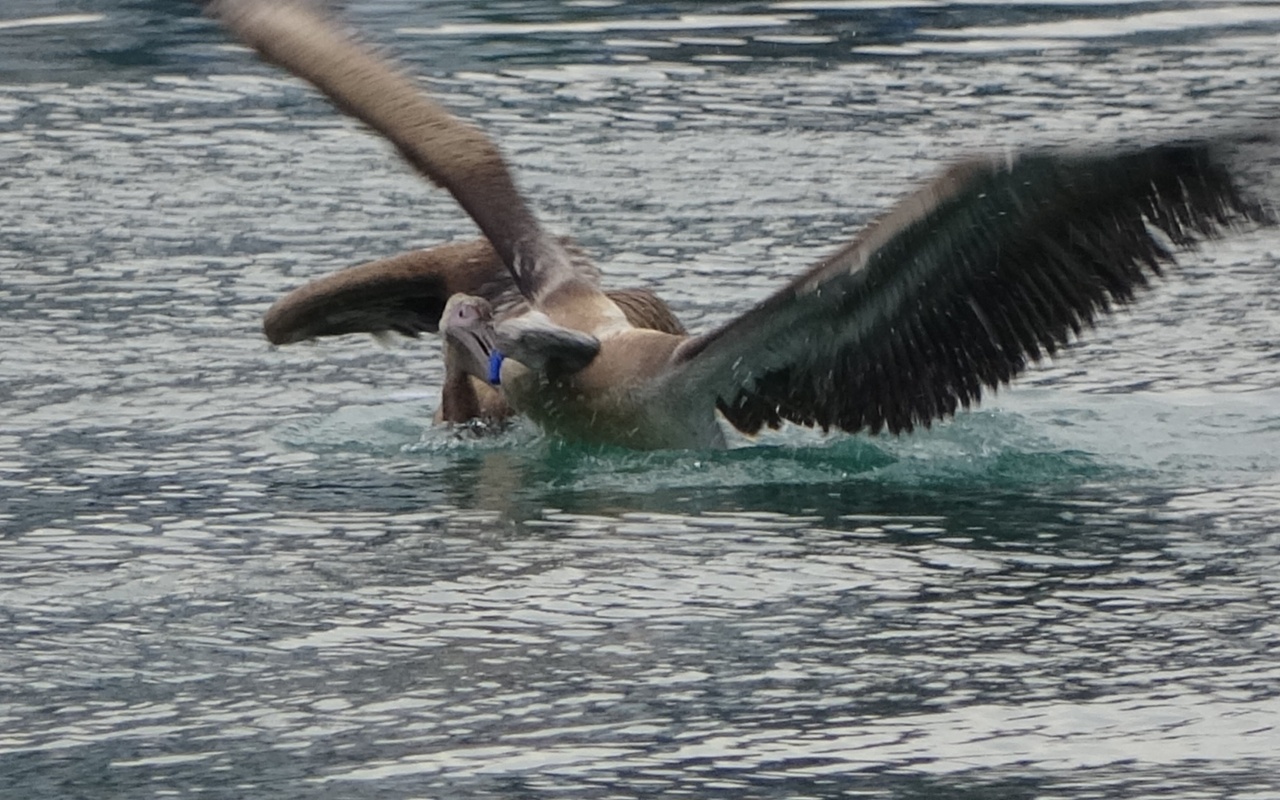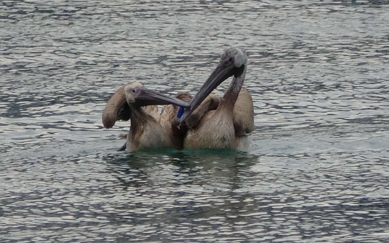O sırada iki pelikan da misinalara dolandı. Denizde sürekli hareket halinde olan pelikanları fark eden balıkçılar önce bir çözüm bulamadı. Yaklaşık bir saat boyunca kurtulmaya çalışan pelikanlar bitkin düştü. Bu durumu fırsat bilen balıkçılar birbirine dolanan iki pelikanı yakalamayı başardı. Misinaların bıçakla kesilerek temizlenmesi ve çapari oltası çıkarılması sonrasında iki pelikan tekrar denize bırakıldı. Bir süre denizde kalan pelikanlar daha sonra gözlerden uzaklaştı.