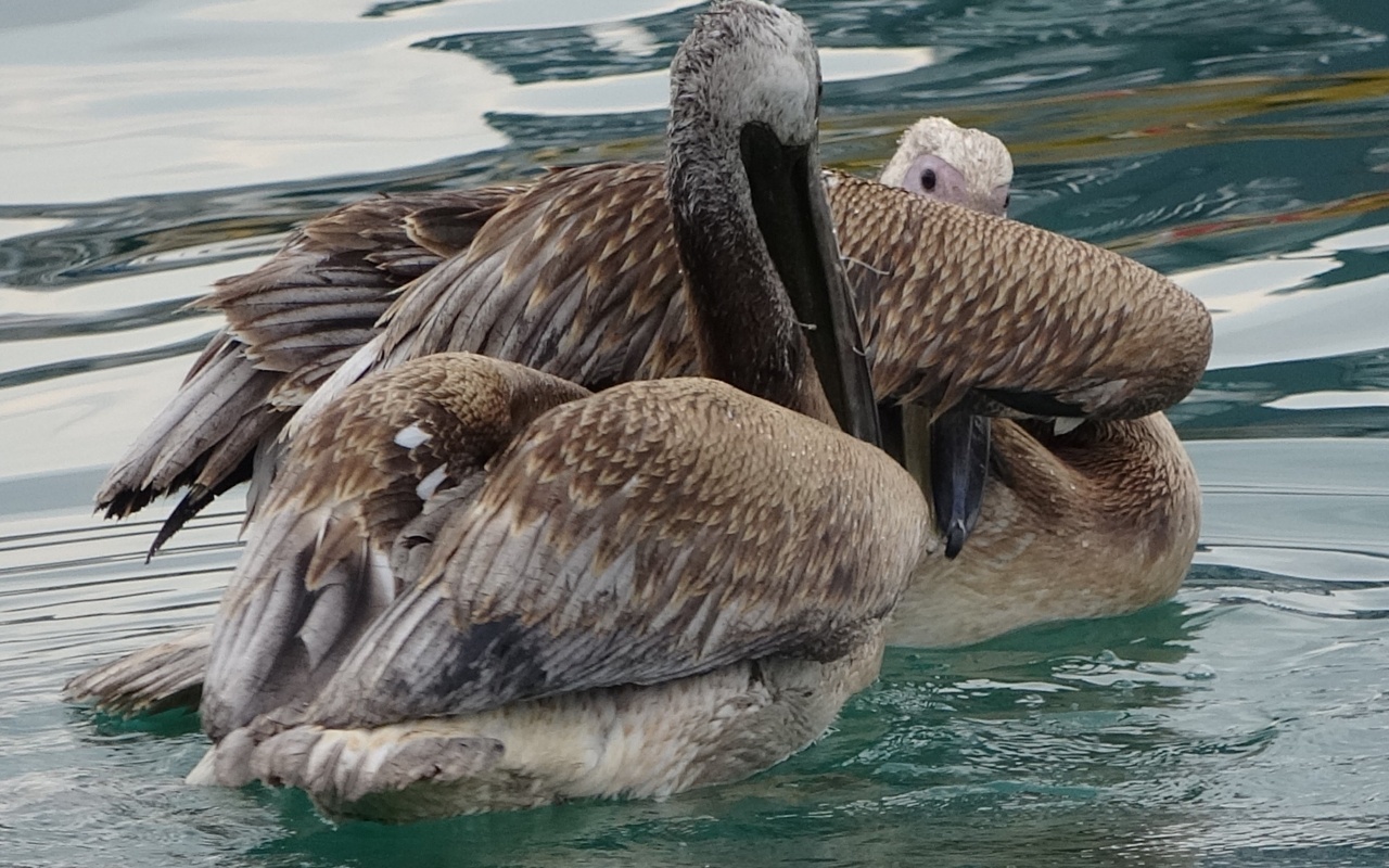 Pelikanların önemli durak yerlerinden Mersin'den göç yolculuğu başladı. 8 tür pelikandan biri olan kahverengi cinsleri Erdemli Balıkçı Barınağı'nda mola verdi. Birinin olta balıkçılarının kullandığı misinaya dolandığını gören diğer pelikan ona yardım etmek istedi.