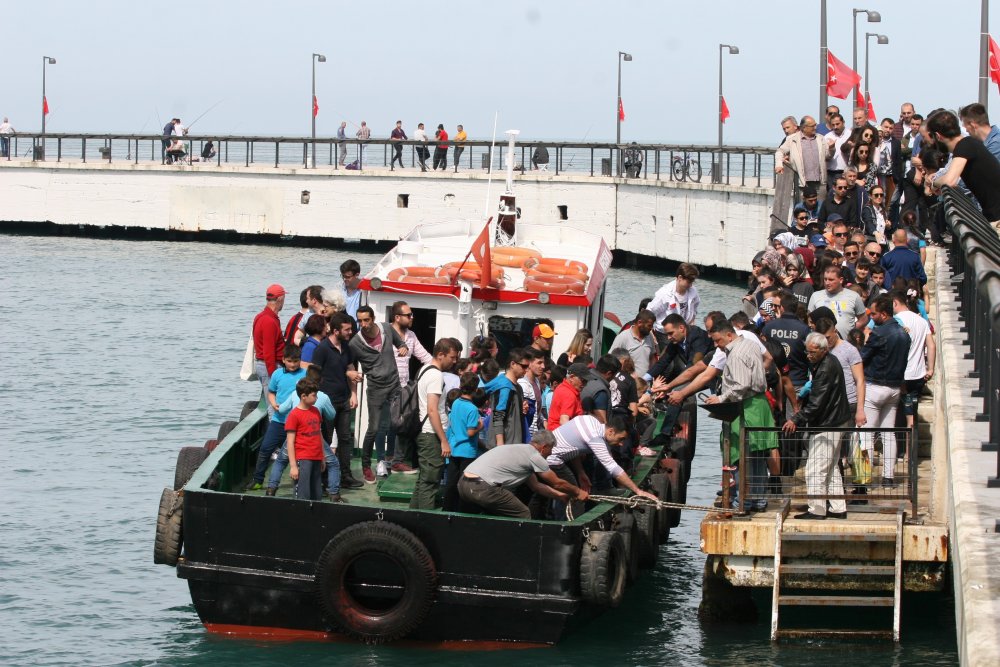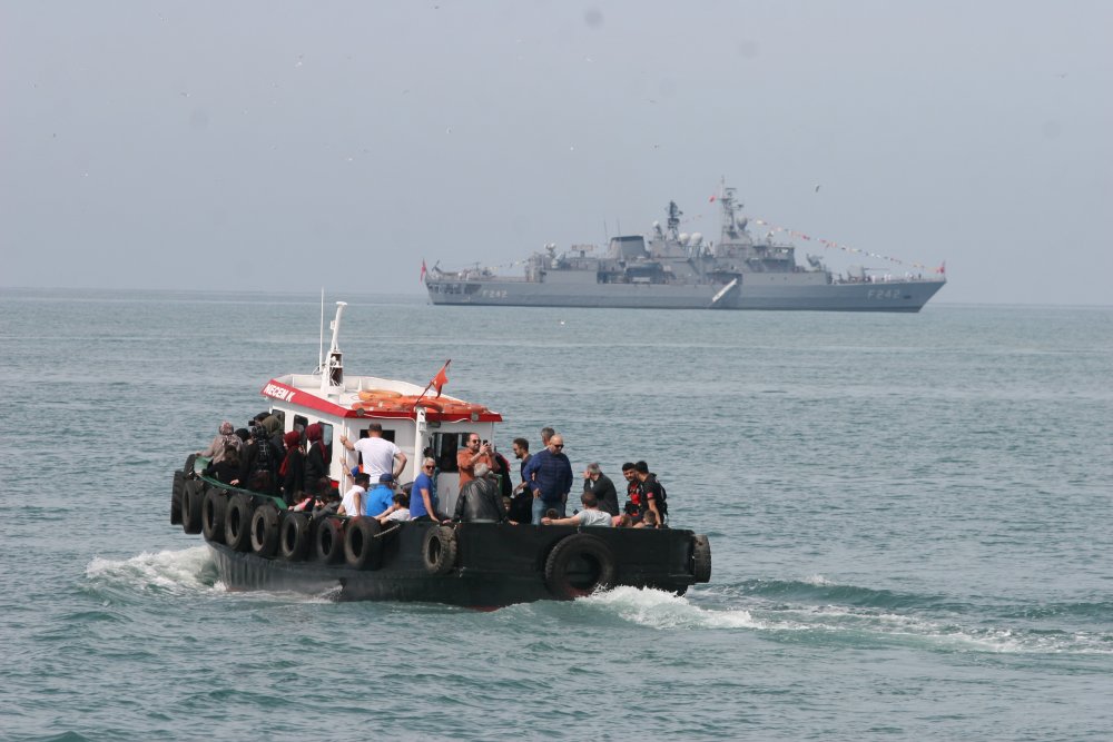 Ziyarete açık olan savaş gemisini dolaşmak isteyen vatandaşlar, iskeleden tekneler aracılığı gemiye taşınarak, TCG Fatih'i yakından inceleme fırsatı buldu. Karadan, yaklaşık 2 kilometre uzaklığa demir atan TCG Fatih'i ziyaret etmek için vatandaşlar dakikalar öncesinden hazır bekledi.